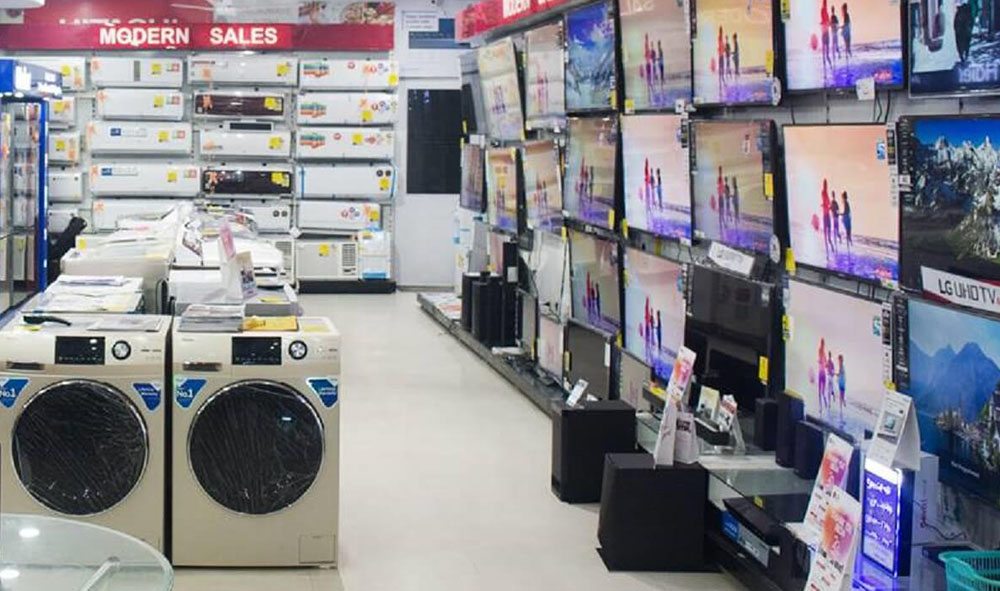 A distinctive octagonal showroom design allows customers to view every item on display creating a stadium feeling. The lower level houses thousands of small appliances, housewares, vacuum cleaners and health care aids. An enormous selection of electronics can be found on the main level including a huge display of flat panel LCD and LED televisions, plus the newest in television technology including Smart TVs with screens up to 90".